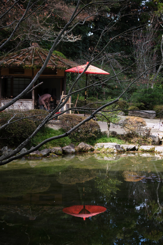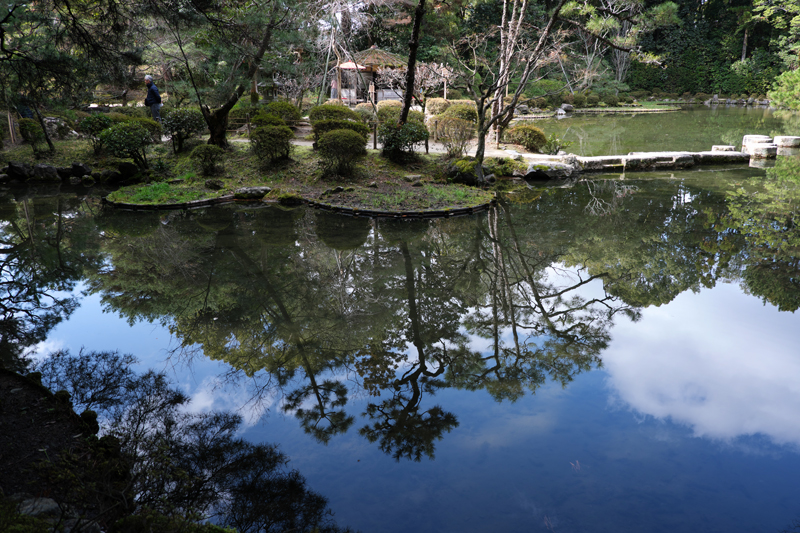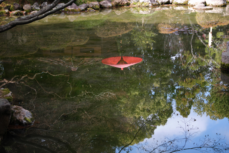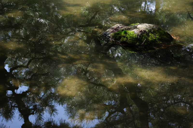 今回は花が咲いていなかったので代わりに池の映りがきれいだったのでそういう表現にしました。